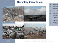 1. 01/07/2019 Bachofner Consulting, 8330 Pfäffikon ZH, +41 52 536 41 09, www.bacons.ch 1 PET und Plastik - Recycling - projekt in Marokko Recycling Casablanca A. Zusammenfassung B. Was erwarten die Zielgruppen ? C. Was wollen wir bewirken ? D. Wer sind wir und warum sind wir erfolgreich ? E. Wie lange dauert es? F. Wieviel investieren wir und wer bezahlt es? G. Wie zahlen wir zurück?